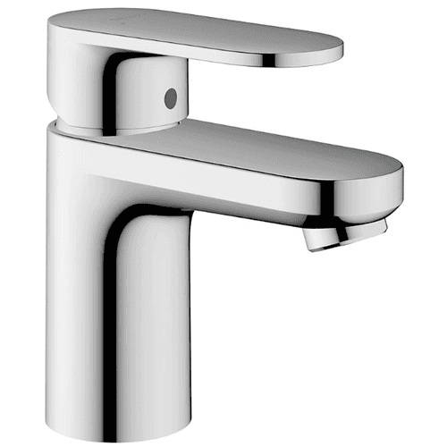 Auf diesem Bild sehen wir eine Valblue-Waschtischarmatur „Trento“ mit einer Push-On-Druckknopfautomatik zum Ein- und Ausschalten.