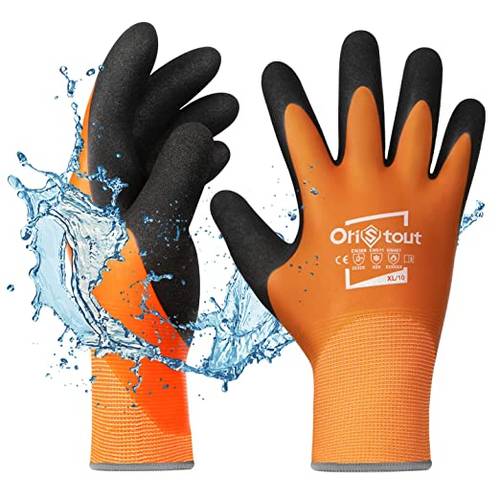 Platz 4 | COOLJOB Wasserfeste Winterhandschuhe | ca. 10 € | Orange, Grau | Latex | ![]() ![]() | |