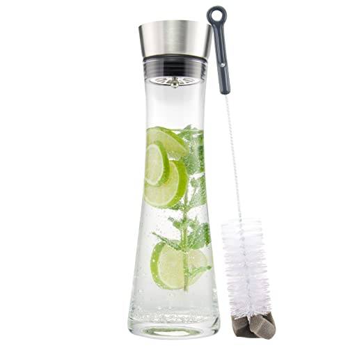 Ein extra Sieb ist nicht unbedingt nötig, aber trotzdem eine Überlegung wert. Besonders dann, wenn Sie die Karaffe mit Obst oder Kräutern befüllt haben. Beim Ausgießen hält das Sieb dann die Stücke zuverlässig in der Karaffe zurück. Sie sind sich noch nicht ganz sicher, ob Sie ein Sieb benötigen? Keine Sorge, dieses können Sie später immer noch nachkaufen.