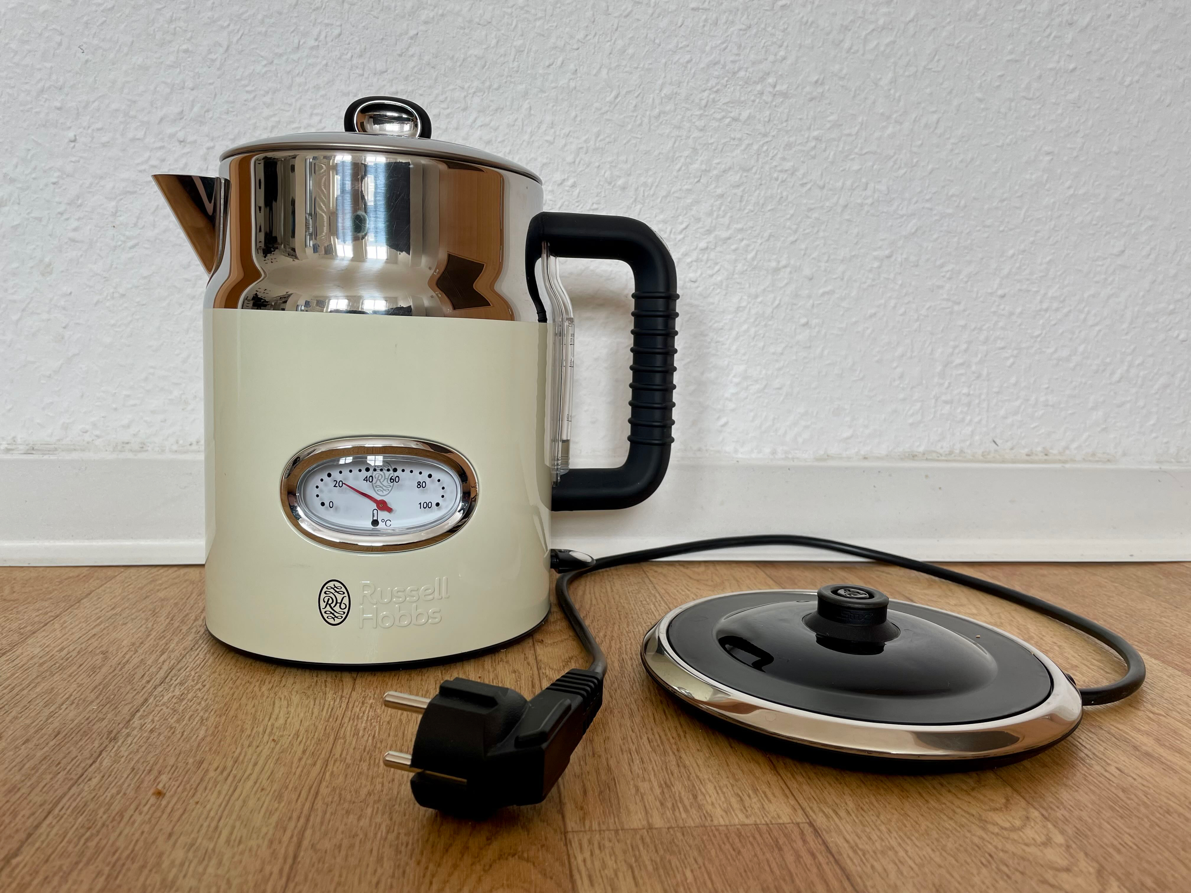 Der Deckel des Russell-Hobbs-Retro-Wasserkochers ist vollständig abnehmbar, was bei Wasserkochern eher selten ist und sowohl Vor- als auch Nachteile mit sich bringt.