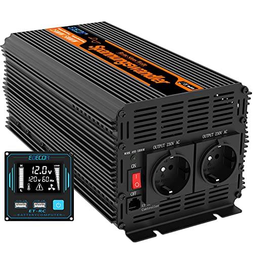 Ein Wechselrichter mit 3.000 W ist ein Spannungswandler mit 3.000 W, der Gleichstrom aus einer Auto- oder Solarbatterie in Wechselstrom umwandelt. So konvertieren zahlreiche Wechselrichter mit 3.000 W 12-V-Gleichstrom in 230-V-Wechselstrom. In unserem Vergleich für Wechselrichter mit 3.000 W finden Sie aber auch Modelle, die für Batterien mit einer Spannung von 24 V passend sind.