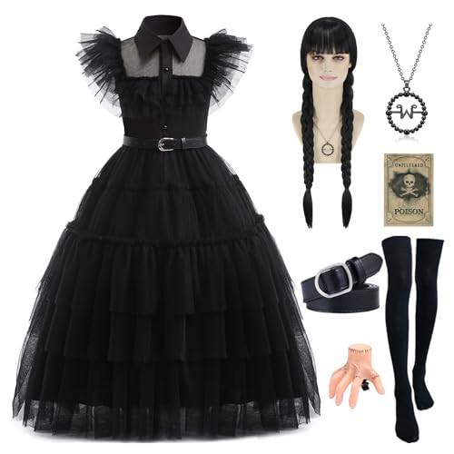 Vor allem muss bei Wednesday-Kinderkostümen darauf geachtet werden, dass Ihr Kind nicht über den Stoff stolpert. Verschiedene Online-Tests für Wednesday-Kostüme zeigen, dass die Größe ein wichtiges Kriterium für einen angenehmen Komfort darstellt.