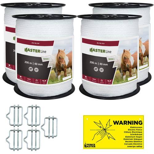 Das Material des Zaunes bzw. des Weidezaun-Bands, in den die elektrischen Leiter eingearbeitet sind, ist in den allermeisten Fällen Kunststoff. Ein wichtiges Merkmal ist die Reißfestigkeit. Diese gibt an, wie stabil der Zaun ist. Für Rinder und Pferde empfehlen wir Modelle mit mindestens 75 kg Reißfestigkeit. Bei kleineren Tieren wie Geflügel können auch geringere Werte ausreichen.