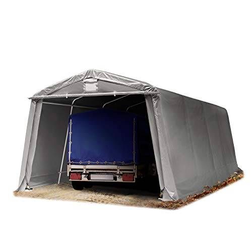 Das graue Lagerzelt der Marke Toolport weist einen UV-Schutz von 80+ auf.