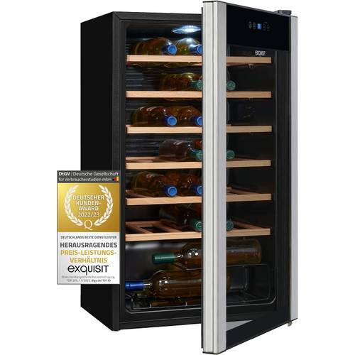 Bei allen Weinkühlschränke in diesem Vergleich werden Luftschallemissionswerte zwischen 30 und 45 dB angegeben, was vergleichbar mit der Geräuschentwicklung eines konventionellen Kühlschranks ist. Als optisches Schmankerl im Wohnzimmer aufgestellt, könnte der Schrank also dem Fernseh-, Musik- oder natürlich dem Weingenuss in die Quere kommen.