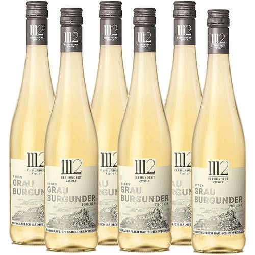 Hier erkennen wir einen Elfhundertzwölf-Weisswein (trocken) – einen Weißburgunder aus dem markgräfichen, badischen Weinhaus.