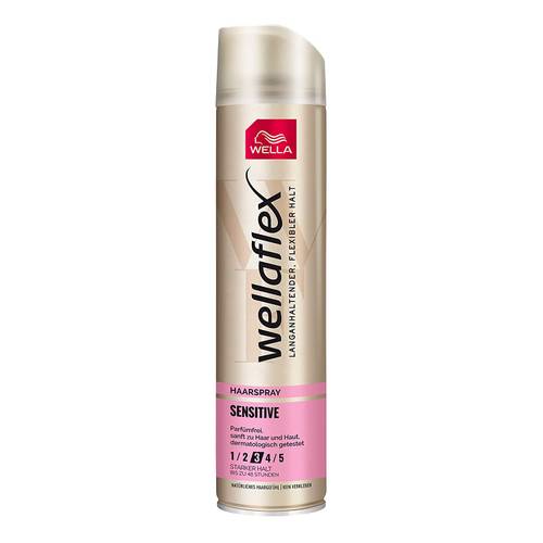 Das parfümfreie Wella-sensitive-Haarspray können Sie auch verwenden, um strapaziertes Haar zu schonen. Generell kommen die meisten Wella-Haarsprays ohne Parabene aus, Silikone sind jedoch in der Regel enthalten.