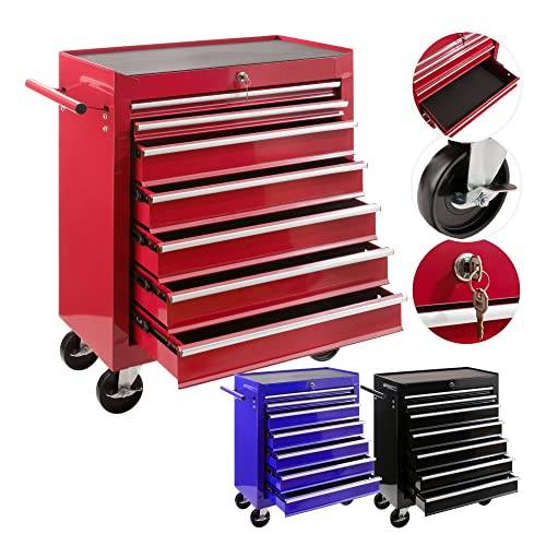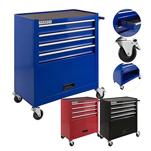 Während bei Werkzeugkoffern noch der Werkstoff Kunststoff dominiert, braucht es beim Werkzeugschrank mit Rollen Materialien, die stabiler und robuster sind, damit es nicht zu Verformungen der Schubladen kommt. Ein Werkzeugwagen, der zwischen 200 und über 1.000 Werkzeuge fasst, braucht eine stabile Grundlage. Das am häufigsten verwendete Material in Werkstattwagen-Tests ist Metall. Es ist meist mit Farben wie rot, blau oder grün pulverbeschichtet. Bedenken Sie jedoch, dass sowohl Gewicht als auch Preis höher sind als bei Kunststoff, wenn Sie beim Werkzeugwagen Metall bevorzugen.