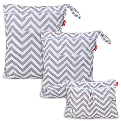 Ein Wetbag in groß eignet sich ideal für den Hausgebrauch, damit Sie mehrere Stoffwindeln auf einmal darin aufbewahren können. Um eine einzelne Stoffwindel unterwegs zu transportieren, eignet sich ein Wetbag in klein hervorragend. Die besten Sets aus Wetbags bestehen aus mehreren verschiedenen Größen. So sind Sie für jede Situation gewappnet. In unserer Vergleichstabelle finden Sie beispielsweise die Damero-Wetbags. Das Set besteht aus drei Wetbags in verschiedenen Größen.