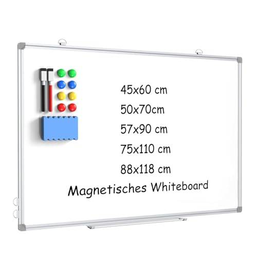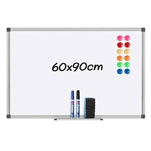 Je nach Anlass und Verwendungszweck sind Whiteboards in unterschiedlicher Größe erhältlich. Günstige Whiteboards, die als Memoboard im Büro oder als Einkaufsplaner in der Küche dienen, haben eine maximale Länge von ca. 60 cm. Bei größeren Modellen kann die längste Kante bis zu 240 cm lang sein, geläufig sind jedoch häufig Rahmen der Länge 90 cm x 120 cm. Boards mit Aluminiumrahmen dieser Größe finden Sie insbesondere in Unterrichtsklassen sowie Präsentationsräumen von Unternehmen. Übrigens sind hier vielfach auch die Alurahmen magnetisch.