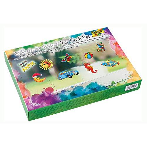 Zum Lieferumfang dieses Sets Folia-Window-Color gehören auch eine DIN-A4-Malplatte, 20 Malvorlagen, zwei DIN-A4-Folien und eine Farbmischtabelle.