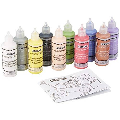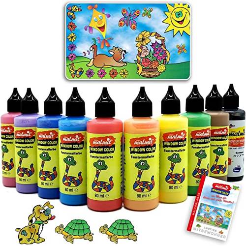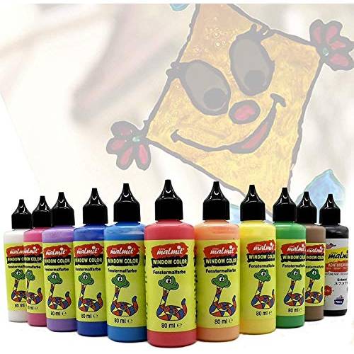 Eine Flasche in diesem Set Folia-Window-Color ist schwarze Konturenfarbe, die neun anderen Farben sind bunt.