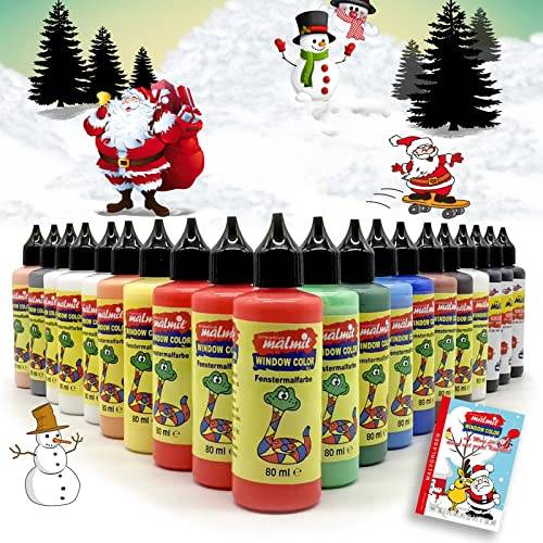 Wenn Sie Window-Color-Farben kaufen, achten Sie darauf, dass Ihre Wunschfarben enthalten sind. Zudem benötigen Sie Konturenfarben. Schwarz ist meist Standard. In manchen Sets sind aber auch Konturenfarben in Weiß, transparent oder Gold enthalten.