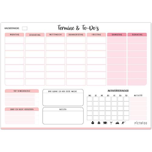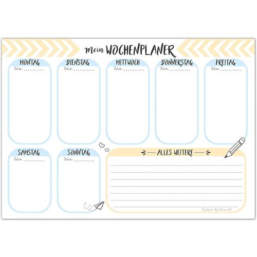 Wochenplaner-Vergleiche haben ergeben, dass es eine sehr große Auswahl und Vielfalt an Wochenplanern gibt: Es gibt zum Beispiel Wochenplaner als Abreißblock, als Kalender im Softcover oder Hardcover, als Ringbuch-Wochenplaner, als Wochenplaner zum Aufstellen, als Wochenplaner-Unterlage für den Schreibtisch oder auch als magnetisches Whiteboard.