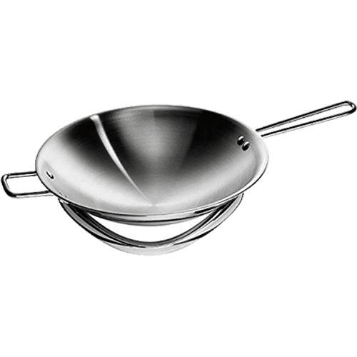 Edelstahl-Wok | Edelstahl-Wokpfannen sind in der Regel nicht zusätzlich beschichtet, was bedeutet, dass das Bratgut bei Nichtachtsamkeit vergleichsweise schnell anbrennt. Dafür jedoch sind sie außerordentlich robust und solide und speichern Wärme zudem sehr gut ab.