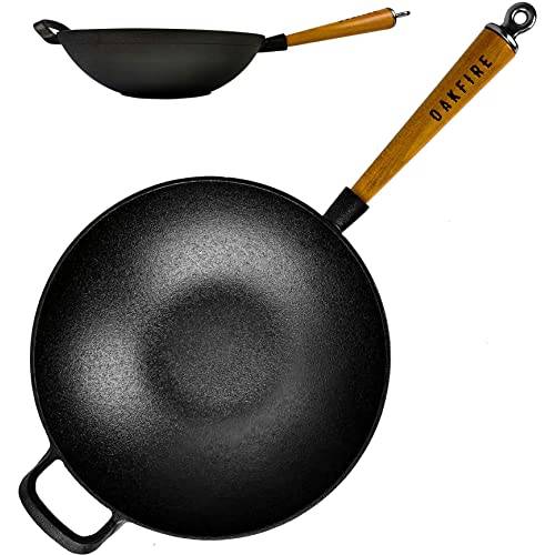 Gusseisen-Wok | Wokpfannen aus Gusseisen ähneln denen aus Schmiedeeisen, sind aber meist noch schwerer. Woks dieser Art benötigen wegen der hohen Masse zwar relativ lange, um richtig aufzuheizen, dafür speichern sie die Wärme aber auch gut und verteilen diese sehr gleichmäßig. Wokpfannen aus Aluguss leiten Wärme dabei besser als Woks aus Eisenguss sowie Edelstahl-Wokpfannen.