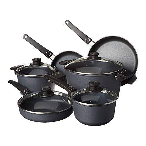 Die meisten Aluguss-Töpfe haben eine Diamant- oder Titanbeschichtung und erlauben daher ein schonendes und fettfreies Garen ohne Anbrennen. Des Weiteren speichern Töpfe aus Aluguss Wärme besonders lange und werden deshalb in verschiedenen Woll-Töpfe-Tests im Internet als energieeffizient beschrieben.