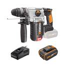 Hinweis: Eine Worx-Schlagbohrmaschine mit Akku kann sich dieselbe Batterie mit anderen Worx-Geräten teilen. Voraussetzung ist, dass dieselbe Spannung vorliegt. Ein Worx-Akku-Bohrhammer mit 20 V ist nur mit 20-V-Akkus kompatibel.
