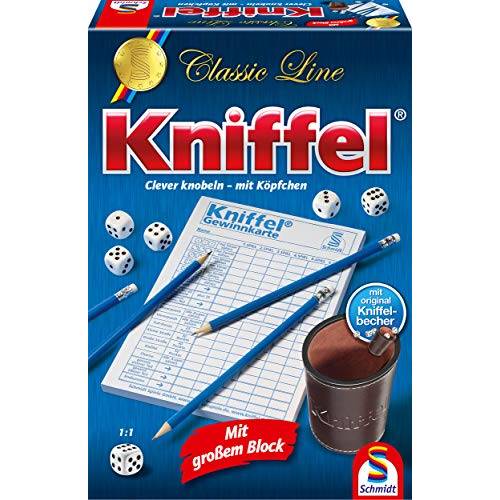 Platz 1 | Schmidt Spiele Kniffel 49203 | ca. 12 € | Es müssen bestimmte Kombinationen von Augenzahlen auf einem Punkteblock gewürfelt werden, um möglichst viele Punkte zu erzielen. | 2 - 8 | ![]() ![]() | |
