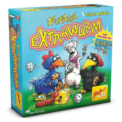 Spielprinzip | Es müssen bestimmte Kombinationen von Augenzahlen auf einem Punkteblock gewürfelt werden, um möglichst viele Punkte zu erzielen. | Mit dem Würfel werden Früchte gepflückt. Wird der Rabe gewürfelt, muss man alle Früchte schnell einsammeln. | Die Würfel enthalten Symbole, aus denen jeder Spieler eine Geschichte spinnt. | Durch Ankreuzen von Zahlen in aufsteigender Reihenfolge müssen möglichst viele Punkte erzielt werden | Die Schweinchen werden verteilt und von den Spielern auf das Brett oder ins Loch gesetzt. Wer zuerst alle los ist, gewinnt. | Je 2 Karten werden zu einem Hexentrunk-Reim kombiniert. | Man wirft 6 Würfel und sucht 2 aus, die addiert werden. Ziel ist es, die farbigen Zahlenreihen auf dem Block zu füllen. | Die gewürfelten Augen müssen einem Domino mit Würmern entsprechen – vom Brett oder von den Mitspielern. Der mit den meisten Würmern gewinnt. |