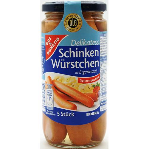 Außerdem sollten Sie darauf achten, ob die Würstchen in Eigenhaut, Natur- oder Kunstdarm bzw. Saitling abgefüllt sind. Würstchen in Eigenhaut werden zum Brühen zwar in einen Schäldarm abgefüllt. Nach dem Brühen wird dieser Darm aber wieder entfernt. Übrig bleibt dann nur noch die Eigenhaut, die sich beim Brühen an der Oberfläche der Wurst gebildet hat. Die besten Würstchen im Glas sind tatsächlich die, die sich in Eigenhaut befinden. Die meisten Produkte wie beispielsweise die Böklunder-Würstchen im Glas sind im Naturdarm. Dieser besteht meist aus einem Schafsaitling. Manche Meica-Würstchen im Glas sind in einen Kunstsaitling abgefüllt.