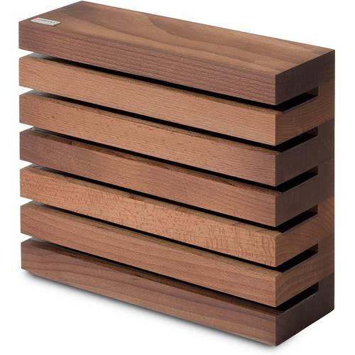 Die Messerblöcke aus Holz sind in verschiedenen Holzarten wie Buche, Akazie oder Eiche erhältlich. Je nach Holzart unterscheidet sich entsprechend auch der Farbton und die Maserung.