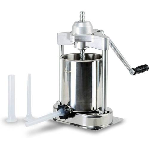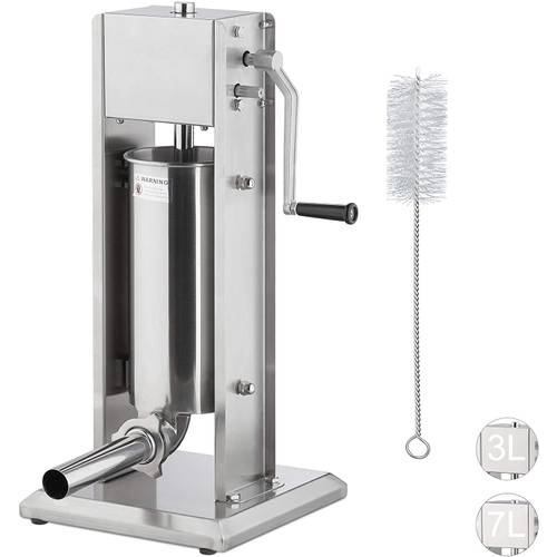 Die Fleischmasse, die dadurch gewonnen wird, kann anschließend direkt mit demselben Gerät zu Wurst weiterverarbeitet werden. Wie viel Liter Sie mit Wurstfüller dieser Art verarbeiten, kann sich von Produkt zu Produkt unterscheiden. In unserer Vergleichstabelle finden Sie 3-Liter- sowie 5-Liter-Geräte. Im Sortiment von Telaxdays sind diese Wurstmaschinen-Modelle beispielsweise zu finden. Auch eine Relaxdays-Wurstmaschine ist aus Edelstahl als Wurstfüller mit 3 Liter Fassungsvermögen erhältlich.
