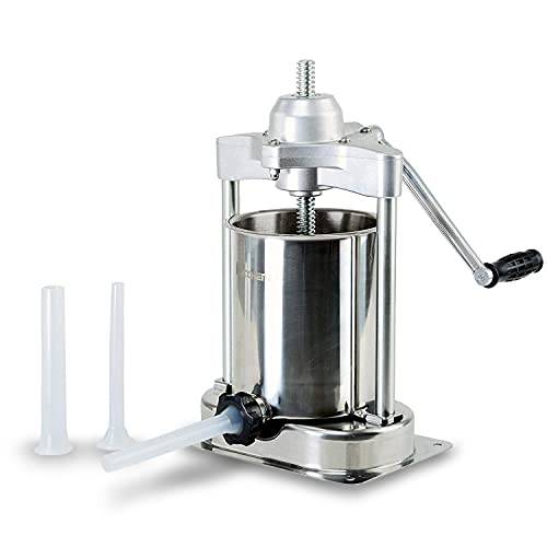 Die vertikale Wurstfüllermaschine eignet sich besonders gut für die private Küche, da diese Wurstfüllmaschine bzw. Wurstspritze nicht mithilfe einer Schraubenzwinge an dem Tisch befestigt werden muss. Die meisten vertikalen Wurstfüller haben ein hohes Eigengewicht, sodass das jeweilige Modell nicht verrutschen kann.