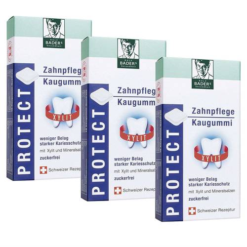 Platz 4 | BADERs PROTECT Zahnpflege-Kaugummi | ca. 14 € | 2,2 kcal pro Stück | Xylit | ![]() ![]() | |