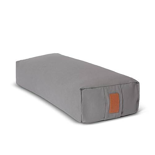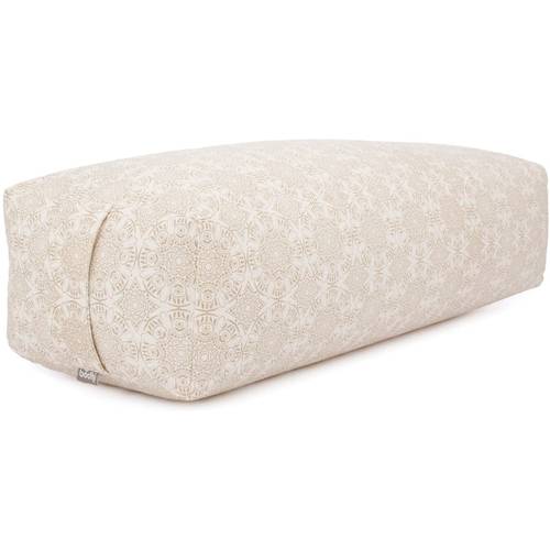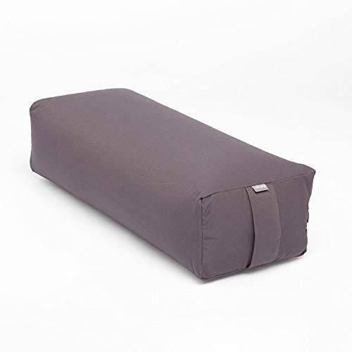Bei der Füllung von Yoga-Bolstern kommt meist Dinkelspelz zum Einsatz. Ein Yoga-Bolster mit Dinkel-Füllung hat den Vorteil, dass es luftdurchlässig ist. Teilweise verwenden die Hersteller auch Buchweizen. Das ist geruchsarm und empfiehlt sich besonders für Allergiker.