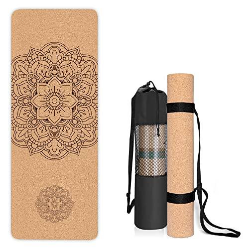 Yogamatten aus Kork mit rutschhemmender Unterseite verringern, vor allem bei bewegungsintensiven Übungen, das Risiko von Verletzungen durch Wegrutschen der Unterlage.