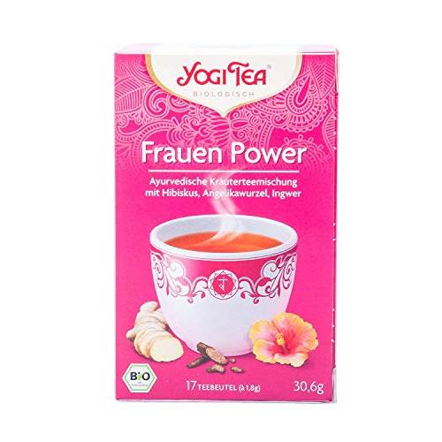 Der Yogi-Tea „Frauen Power“ kombiniert ayurvedisch inspirierte Kräuter wie Angelikawurzel, Hibiskus und Ingwer zu einer fruchtig-würzigen Mischung, wie wir erfahren.