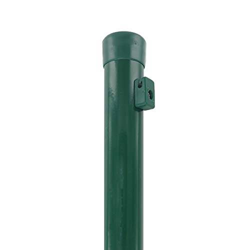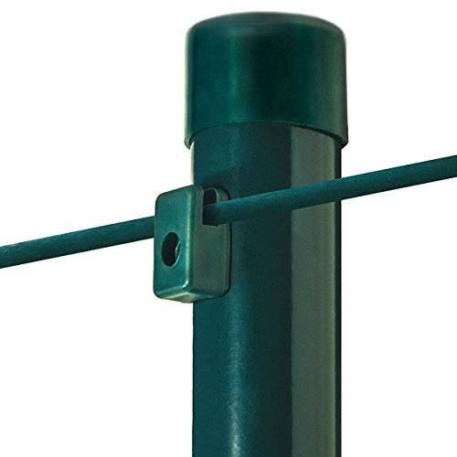Hinweis: Zaunpfosten zur Konstruktion eines Maschendrahtzauns sind mit Spanndrahthaltern versehen, an denen der Zaun einfach fixiert werden kann.