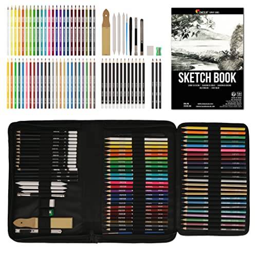 Zum Zeichnen von Skizzen eignen sich Blei- und Kohle-Zeichenstifte am besten. Da Skizzen häufig nur in Schwarz-Weiß und Grautönen gehalten sind, benötigen Sie kein Zeichenstifte-Set mit vielen verschiedenen Farben.
