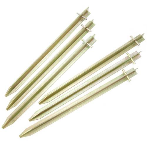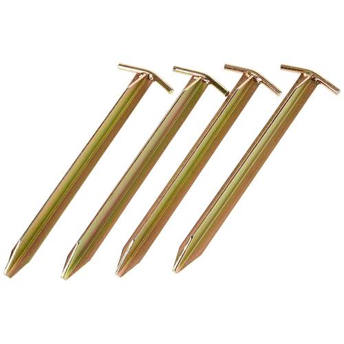T-Heringe ähneln im Grunde genommen sehr den Heringen mit V-Profil. Heringe mit T-Profil sind ebenso längliche und unten spitz zulaufende Verankerungshaken, aber in T-Form. Ebenso sind sie deutlich breiter als die Universal-Heringe, weshalb sie grundsätzlich auch stabiler und besonders gut in lockeren Böden halten.