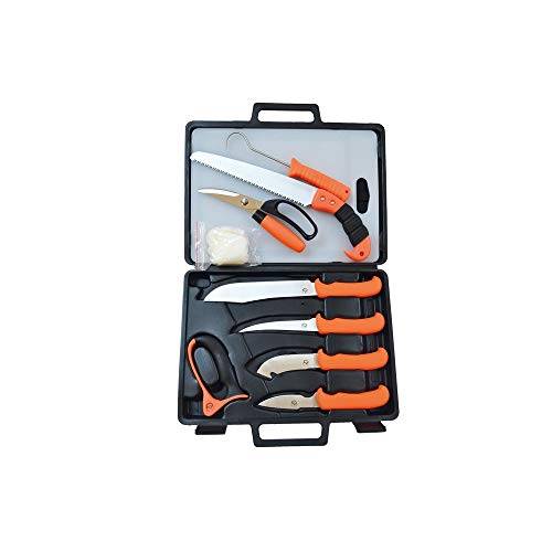 Platz 1 | Gvdv Zerwirkset | ca. 69 € | Hackmesser, Häutungsmesser, Fleischermesser,Kappenmesser, Grillgabel, Schere, Karbidschärfer, Knochensäge, Brustkorbspreizer, Schneidebrett, Wildreinigungshandschuhe, Nylonseil, Kabelbinder, Band | Edelstahl | ![]() ![]() | |