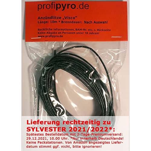 Der Kauf einer Zündschnur ist nur möglich, wenn Sie bereits das 19. Lebensjahr erreicht haben. Beim Versand wird üblicherweise durch die Postboten eine Alterskontrolle durchgeführt.