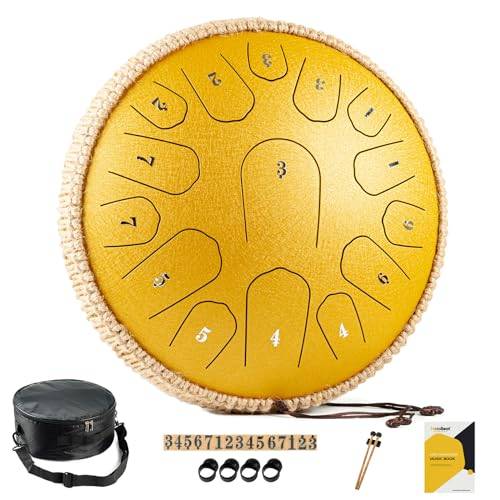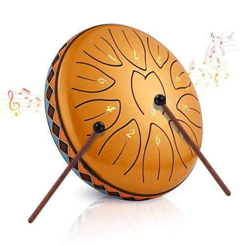 Der Hersteller Orora bietet mit seiner Steel Tongue Drum ein Musikinstrument, das sich sowohl für Kinder als auch für Erwachsene eignet und einen entspannenden Klang erzeugt. Die Handpan verfügt über 13 unterschiedliche Noten, die eine breite musikalische Ausdrucksvielfalt ermöglichen. Im Lieferumfang enthalten ist ein kostenloses E-Book mit 20 Notenblättern, welches vor allem Einsteigern einen leichten Einstieg in das Spielen dieses Instruments ermöglichen soll. Mit seiner originellen Bauart und dem einzigartigen Klang kann die Zungentrommel auch als kreatives Geschenk dienen.