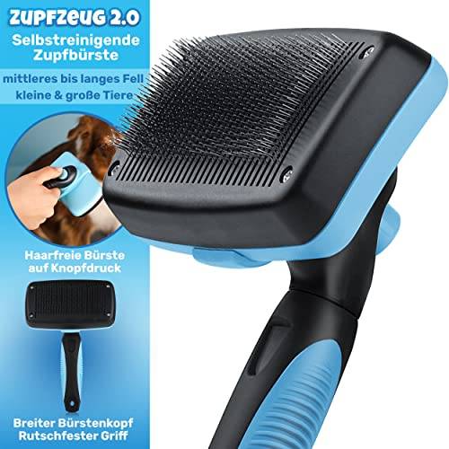 Eine professionelle Zupfbürste für den Hund ist eine einfache und zugleich schonende Möglichkeit, das Fell von Schmutz zu befreien und zu glätten. Diverse Zupfbürsten-für-den-Hund-Tests im Internet empfehlen die Anwendung einer Zupfbürste für Hunde einmal täglich.