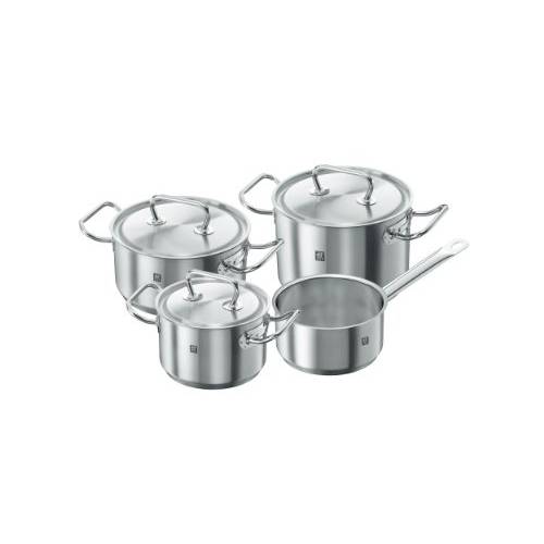 Zwilling-Topfsets aus Edelstahl sind robust, langlebig und rosten nicht. Weil Edelstahl lebensmittelecht ist, nehmen die Töpfe weder den Geschmack noch die Farbe von Lebensmitteln an.